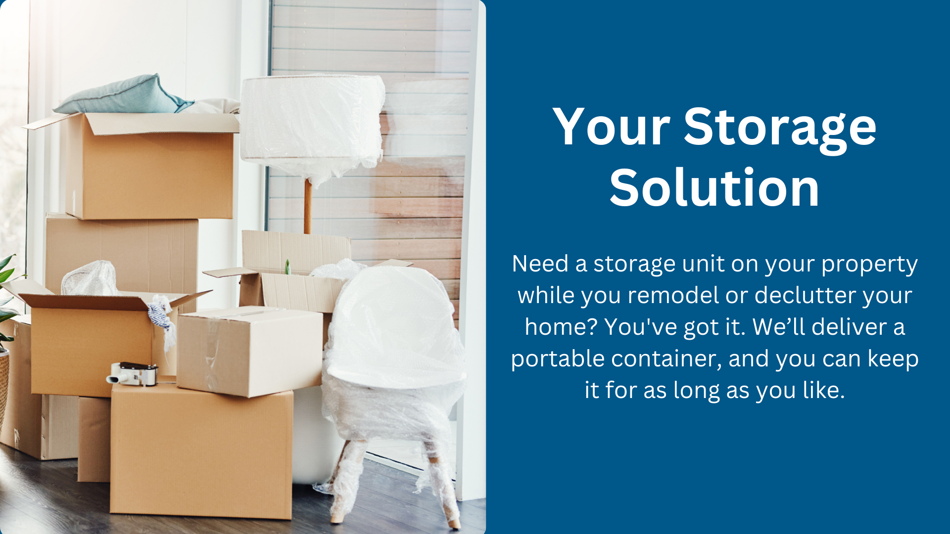 Doing renovations or just need some extra space at your home? We’re proud to offer the portable storage solutions. We’ll deliver your portable storage container straight to your driveway or construction site, at the time you have requested. Whatever your need, our portable storage containers are designed for security and convenience.